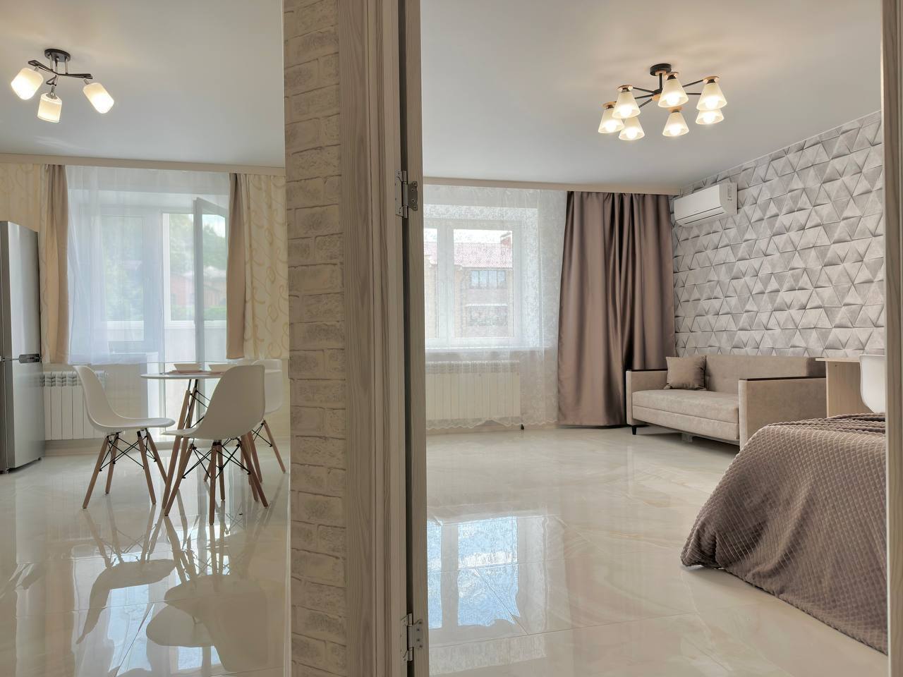 Современная 1-комнатная квартира с дизайнерским ремонтом площадью 44,4 м² расположена по адресу ул. Студенческая, д. 6 в спокойном районе Смоленска. Подходит для гостей, желающих снять квартиру посуточно в Смоленске — для командировки, отдыха или романтического уик-энда без посредников.