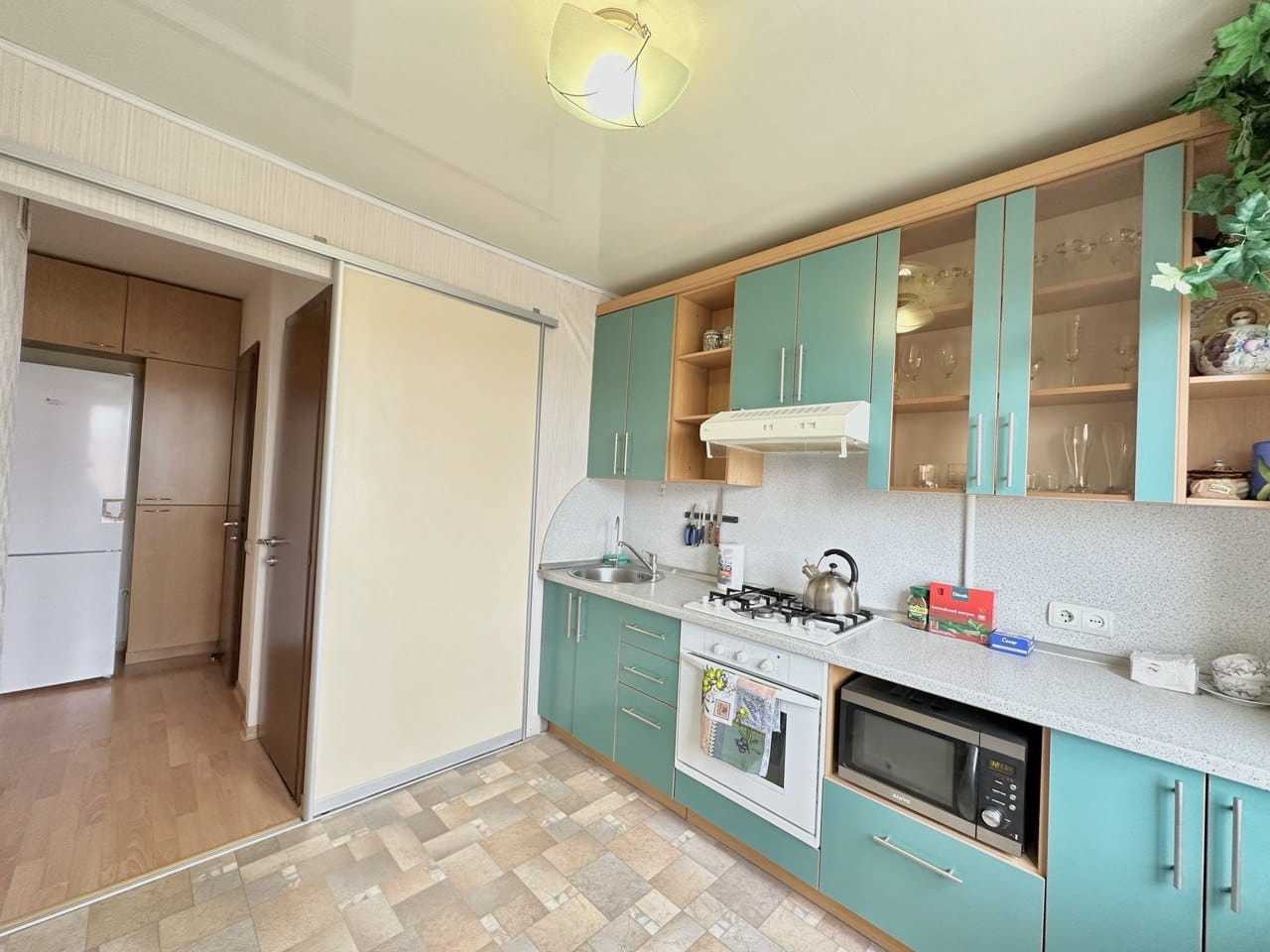 Плита, посуда, столешницы и холодильник — всё моется до блеска, без следов предыдущего заезда.